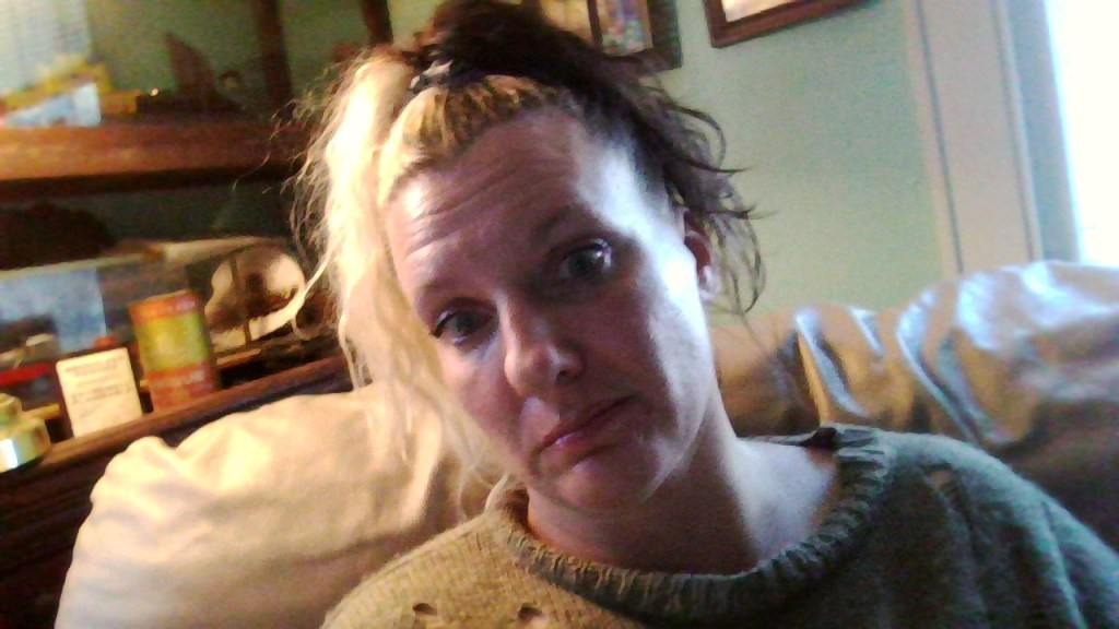 I feel pretty good today–no headache! I’m super glad about that. Tori seems better today. Sugar Momma is still complaining of hallucinations, and is practicing grounding techniques. There is a horrible movie on with blood and gore and car wrecks and death. It makes me feel bad for Gert, who is watching. She lost her husband in a car wreck.